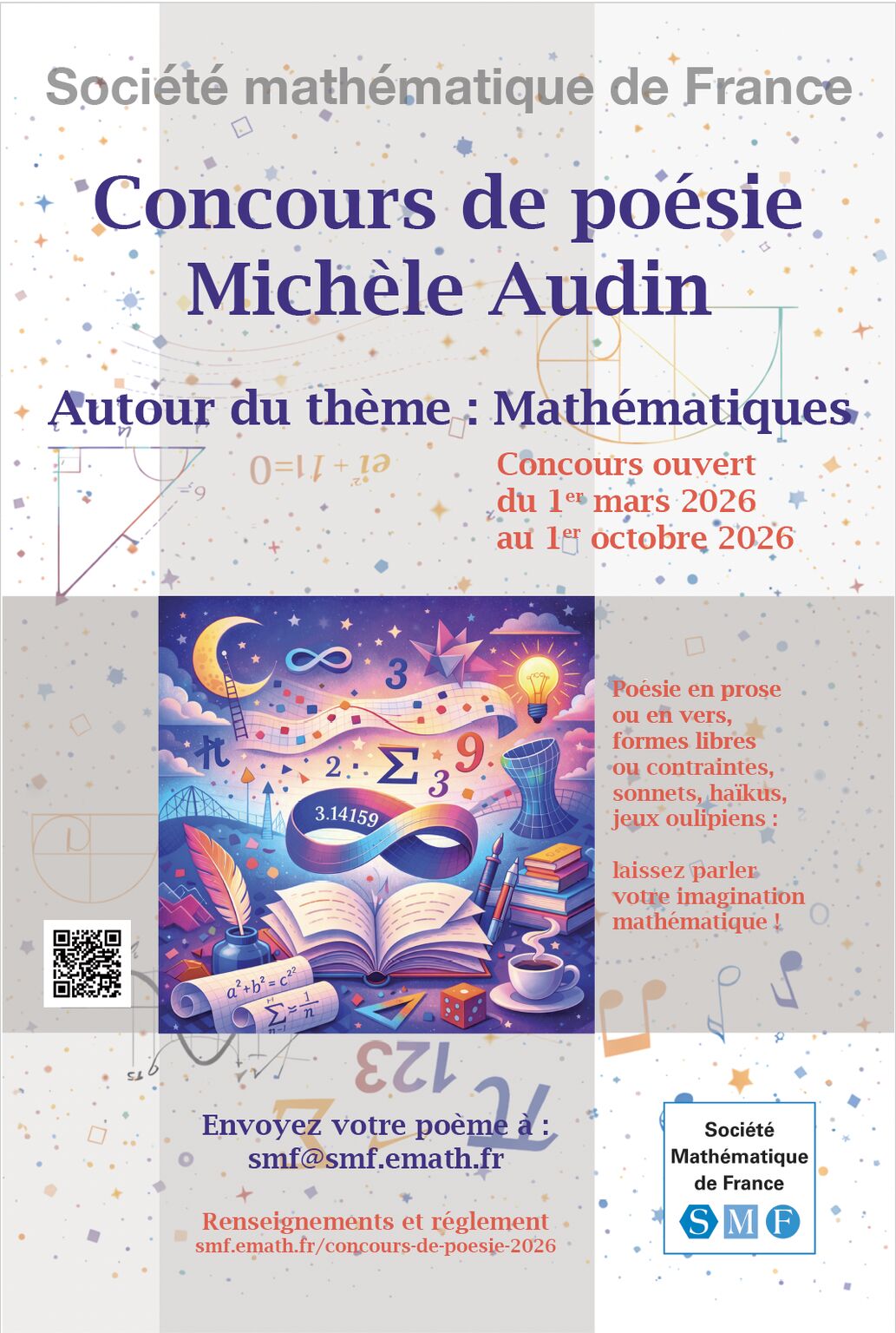 Une conférence en hommage à Michèle Audin est organisée par l’association Femmes et mathématiques, la Société mathématiques de France et l’Institut Henri Poincaré le 14 mars 2026. Elle aura lieu à l’IHP. Un livret électronique Souvenirs sur Michèle Audin est mis en...